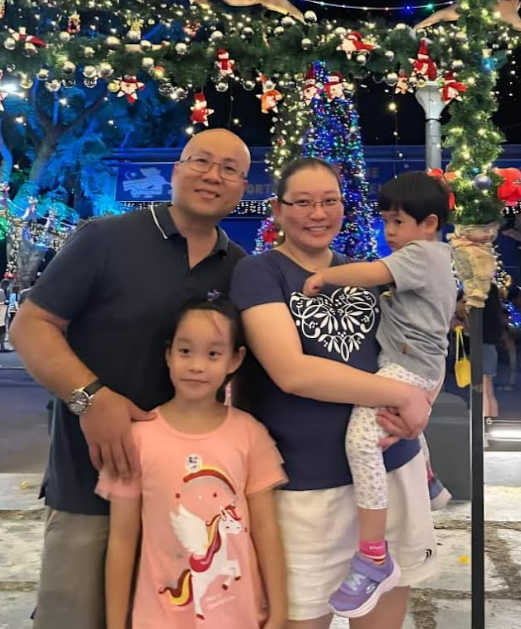 Boxson and Kristin (standing) with Dr. Chong and Goldie in 2026.